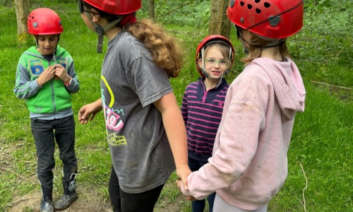 Our activities started in a really fun way with the Low Ropes Trail. This has been expanded further since last year, and we enjoyed trying it out! We had to cooperate well to complete the trail. It was good!