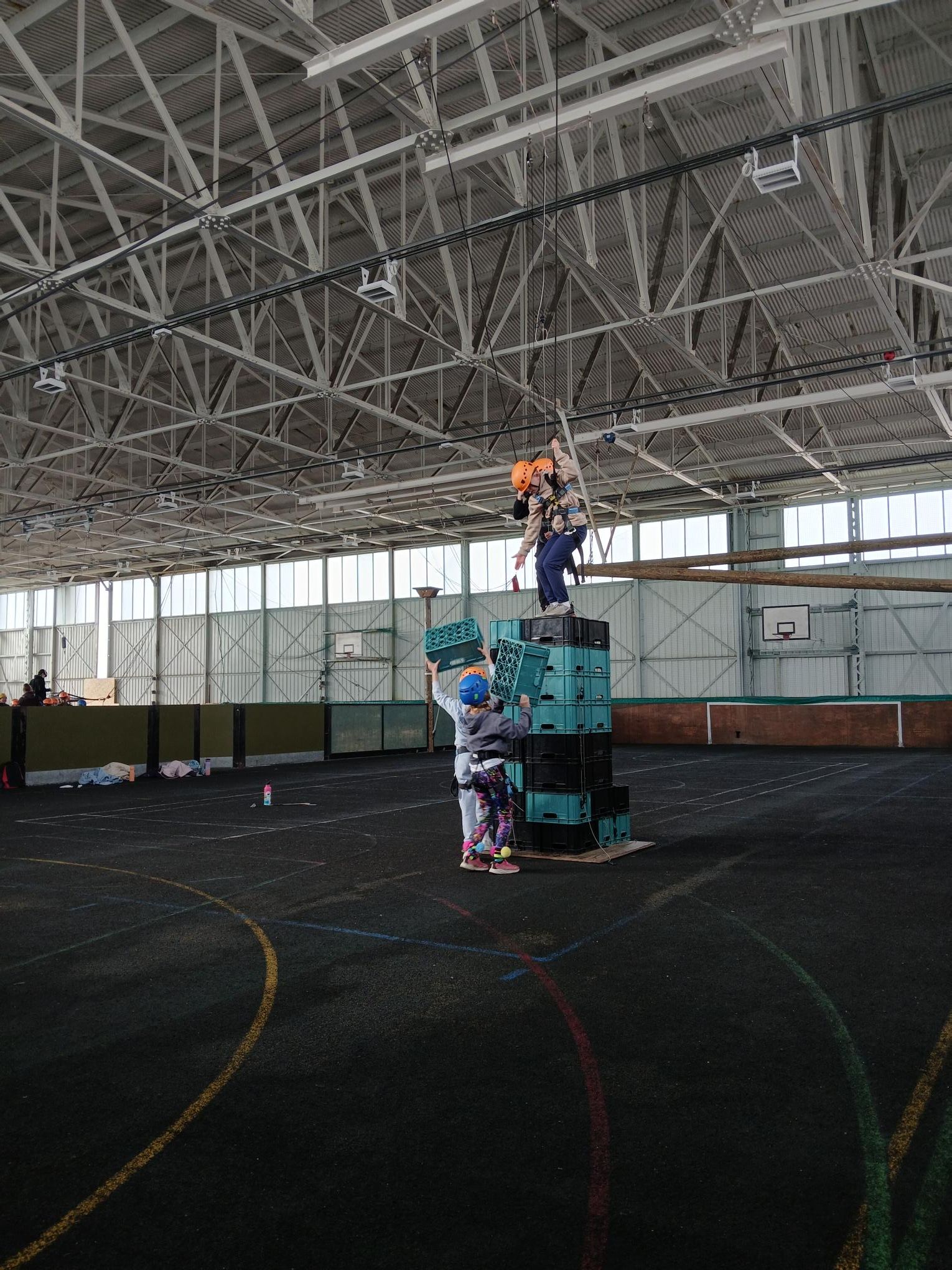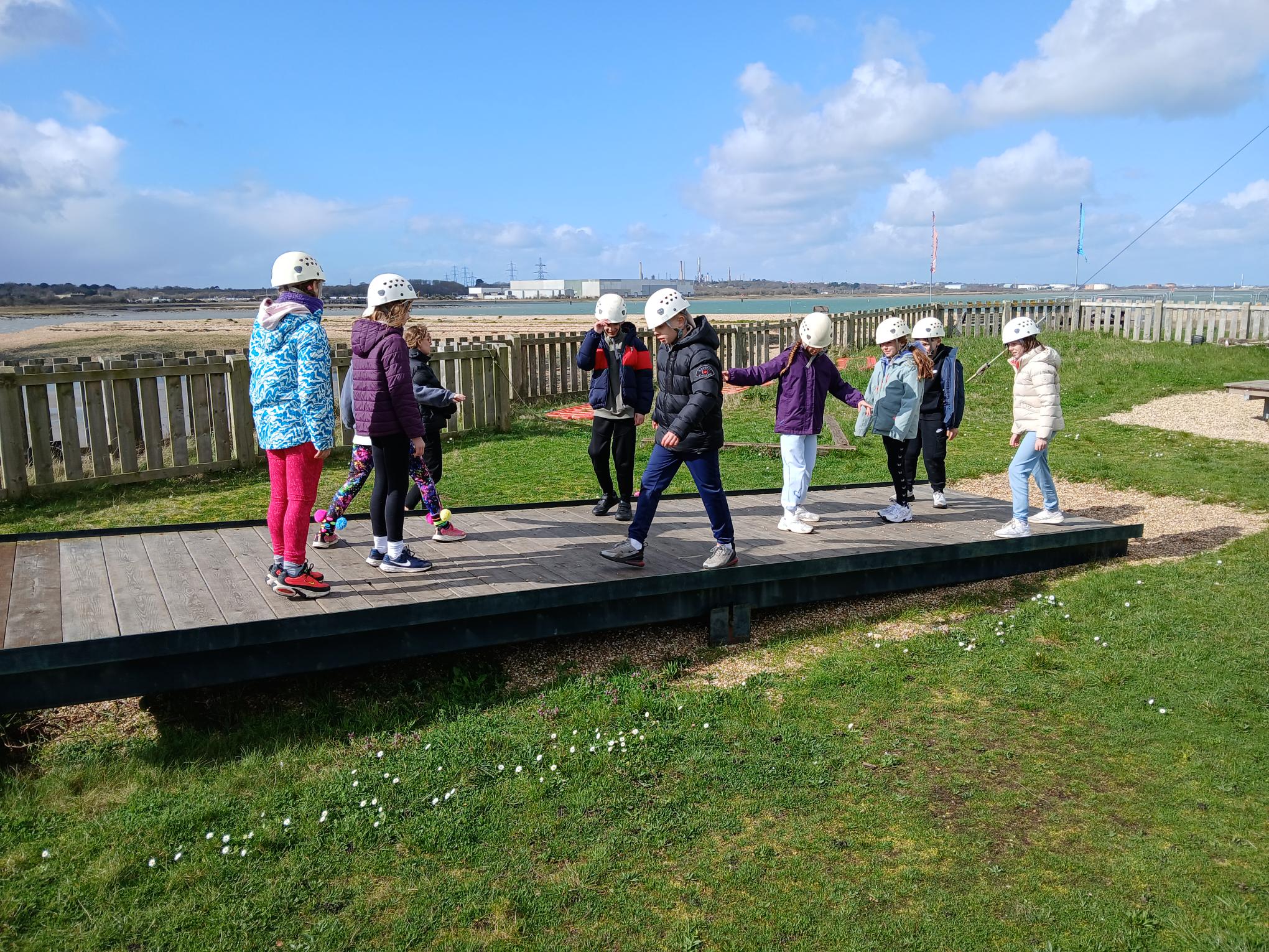 After a fun first evening, we all had a good first night’s sleep and woke up raring to go for our second day of activities. We enjoyed our breakfast and then Group 3 headed straight down to the beach where they spent the morning working on the Seine netting activity. This is where you stand on the shore and throw out a big net. You then pull it in to see what marine organisms there are. As well as learning all about marine wildlife, we found out how pollution is damaging the sea and what we can do to help. At the same time, Groups 1 & 2 had to brave Crate Stacking. As the name suggests, this involves building the biggest tower of crates, but the fun is that we have to climb fast as we build, before the stack collapses and we are left hanging on a wire! We will leave you in suspense until we get home before letting you know which team climbs the highest. They also took part in a series of initiative tests. These were great fun and required lots of teamwork.