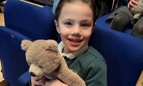 Years 1 and 2 had a great time at the Giant Sing with all their teddy bears on Wednesday.  We had been busy at school, rehearsing songs for a performance of Barnaby Bear’s Adventures at Sea (an interactive show organised by Hampshire Music Service). Then we joined children from another eight schools at The Anvil in Basingstoke, and had a wonderful time joining in with the singing while watching the show unfold.