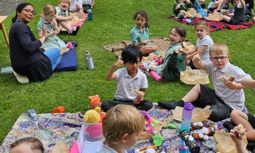 This week Year R had an amazing time at their Teddy Bears Picnic in the beautiful grounds of Pen's grandparents' house (Mr and Mrs Powell). A tiny bit of drizzle did not dampen their moods as they tucked into food they had prepared themselves: sandwiches, cheese straws and pizzas. Mr and Mrs Powell surprised them all with a lovely ice cream (sprinkles optional) for pudding. After a lot of fun and games, including parachute games and teddy hide and seek, Year R had a hot walk back to school where they each decorated a cupcake to eat while relaxing in the classroom.
