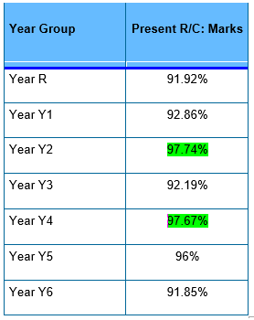 Governors have set the attendance target for the school at 97%. Last week the attendance rate for the whole school was 94.49%.