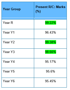 Governors have set the attendance target for the school at 97%. The class with the best attendance last week was Year 2. Well done Year 2!
