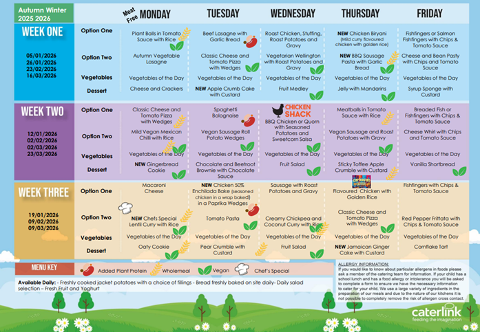 Following feedback, Caterlink have slightly amended the menus for the Spring term:
