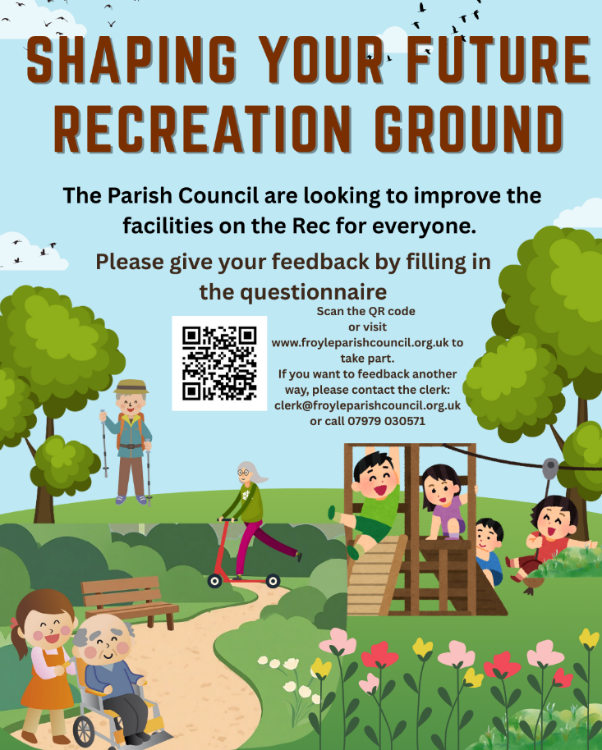 Froyle Parish Council are looking to improve the facilities on the Froyle rec for everyone. Please give your feedback on the online questionnaire which is available at http://www.froyleparishcouncil.org.uk/rec