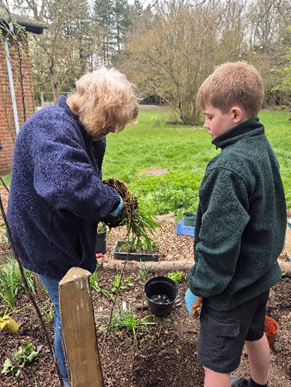 This week the garden has continued its transformation ahead of 8th May when it is officially opened, in honour of Sir David Attenborough’s 100th birthday. On Saturday Madame Jones was joined by Catherine and Robin from Bentley who planted, weeded and put up trellis, kindly donated by Martin Cashmore Fencing at Holt Pound.  Also this week, we have been very kindly donated over 50 plants by local Bentley residents Catherine and Mascha who came and helped the Nature Guardians plant them on Tuesday afternoon.  We are very grateful to Robin, Catherine and Mascha for their kindness, generosity and expertise. If you are able to offer any help, however small, please do contact the school office. There is still planting, weeding, pruning and tidying to be done!